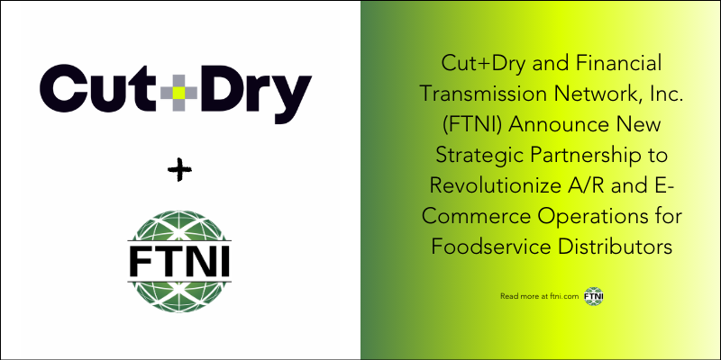 SAN FRANCISCO, CA and OMAHA, NE — Cut+Dry and Financial Transmission Network, Inc. (FTNI) proudly announce a groundbreaking strategic partnership tailored for Foodservice distributors. This collaboration seamlessly integrates FTNI’s advanced A/R...